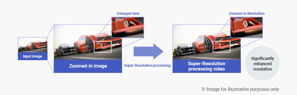 This blurring is improved by “Super-Resolution Technology” which significantly enhances resolution, allowing images to be reproduced with clarity.