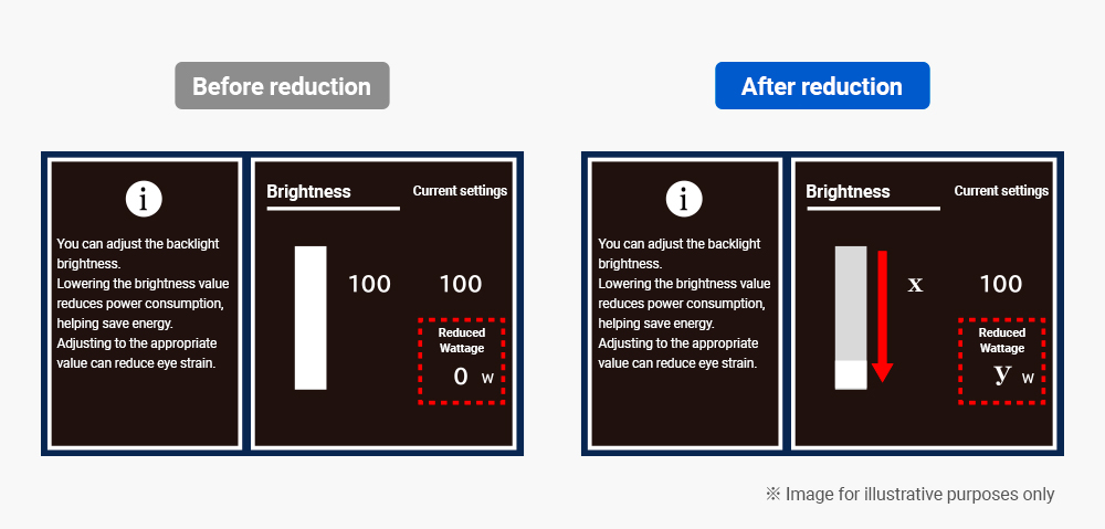 Our previous "Blue Reduction" feature only cut blue light, maming yellow tones to appear more prominent when the value was increased. With "Blue Reduction 2", we suppress yellow tones while still cutting blue light component, allowing you to use the blue light reduction feature more naturally.