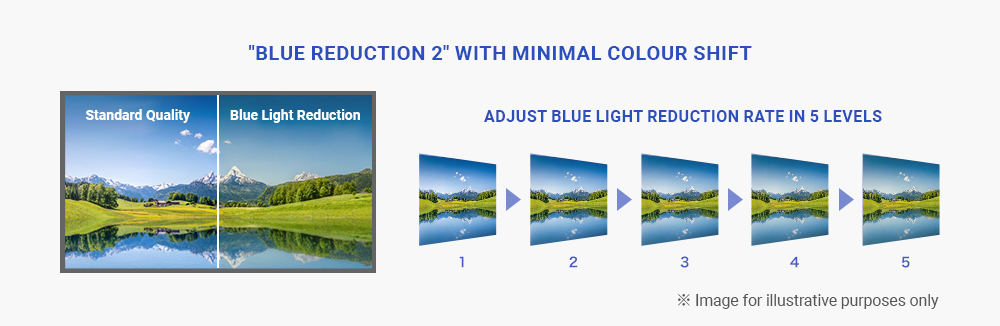 This product features "Blue Reduction 2" function that reduces blue light directly on the screen.