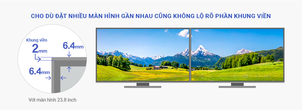 | 23.8-inch | Trên: 2.0mm / Trái phải: 2.0mm | Trên: 6.4mm / Trái phải: 6.4mm |