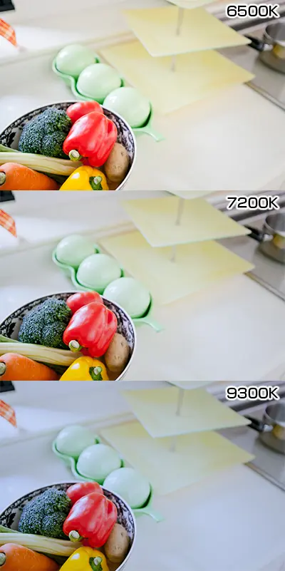 9300K có màu sắc rất tươi sáng nhưng có thể cảm thấy hơi xanh trắng